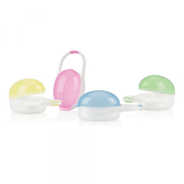 Mantén el chupón de tu bebé limpio y seguro con el estuche Nuby Pac Cradle, diseñado para protegerlo de suciedad y gérmenes durante paseos o viajes.