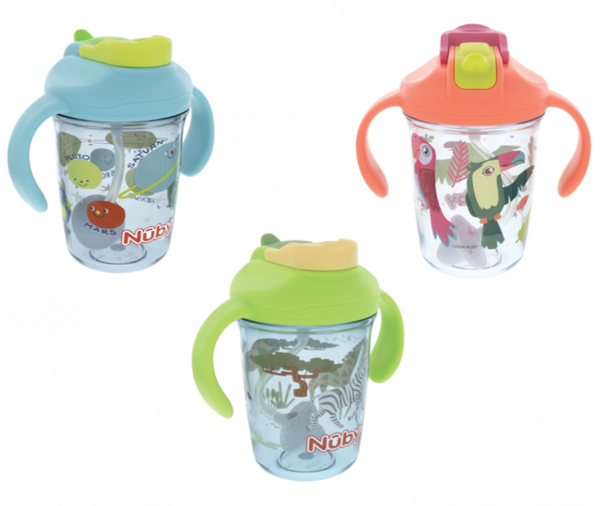 El vaso Nuby 2 en 1 acompaña a tu bebé en su transición del biberón al vaso gracias a su boquilla rÃgida y popote de flujo libre. Con asas fáciles de sujetar, tapa abatible y un diseño colorido, es perfecto para llevar a todas partes.