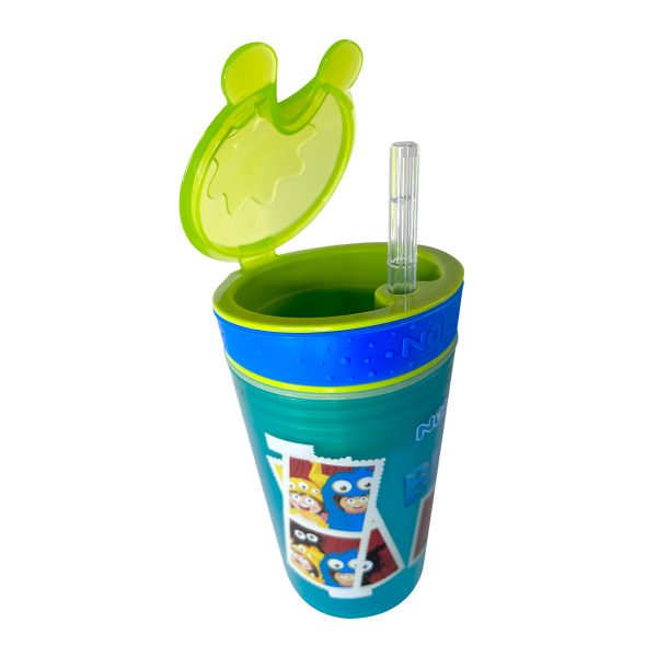 El Snack N’ Sip de Nûby permite a los niños disfrutar de sus bebidas y snacks favoritos en un vaso, su popote es muy suave y ayuda a prevenir derrames y goteos. El vaso tiene un recipiente integrado para snacks.